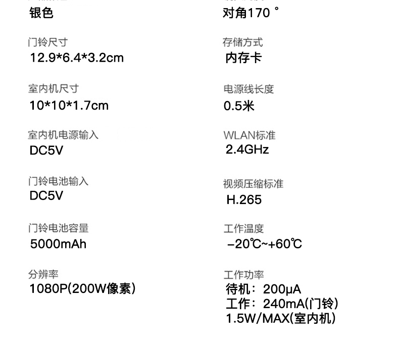 低功耗无线高清门铃